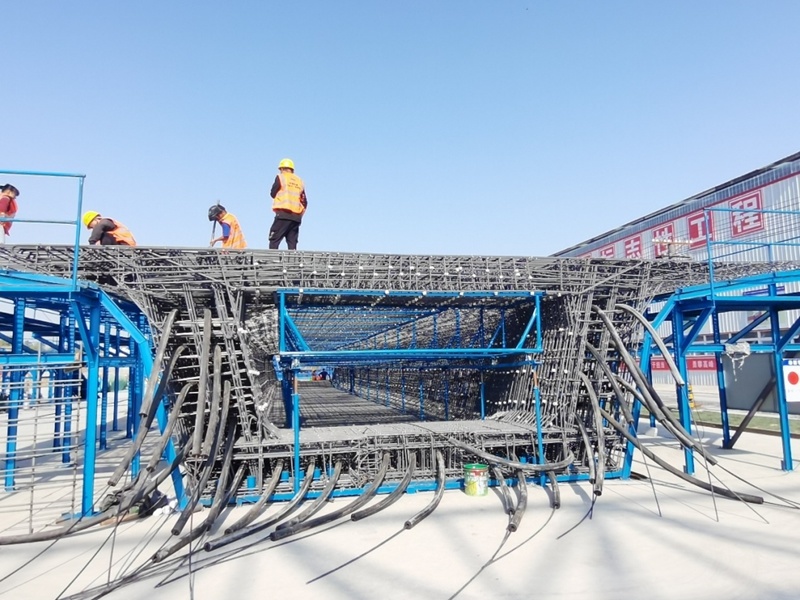 廊坊凱博建設(shè)機(jī)械科技有限公司(凱博科技)依托北京建筑機(jī)械化研究院有限公司在鋼筋加工機(jī)械領(lǐng)域多年的技術(shù)積累,針對(duì)高鐵箱梁預(yù)制施工各環(huán)節(jié)對(duì)鋼筋制品的差異化需求,潛心研究、精心攻關(guān),按照中鐵十一局集團(tuán)橋梁有限公司項(xiàng)目需求,助力新建首個(gè)滬渝蓉項(xiàng)目武宜段WYZQ-5標(biāo)荊門鐘祥制梁場(chǎng)。其中鋼筋加工數(shù)字化項(xiàng)目,包含GQX-300數(shù)控鋼筋剪切生產(chǎn)線、GWXL2-32D數(shù)控彎曲中心、GWXL4-25D數(shù)控彎曲中心、GQX-GWX-25數(shù)控鋼筋剪切彎曲一體生產(chǎn)線、GGJ12數(shù)控鋼筋彎箍機(jī)、GT5-12調(diào)直機(jī)(32米)、GTWQ12調(diào)直五機(jī)頭、HJDW12焊接定位網(wǎng)等多種設(shè)備,可定制化生產(chǎn)高鐵箱梁預(yù)制施工各環(huán)節(jié)多種鋼筋制品。