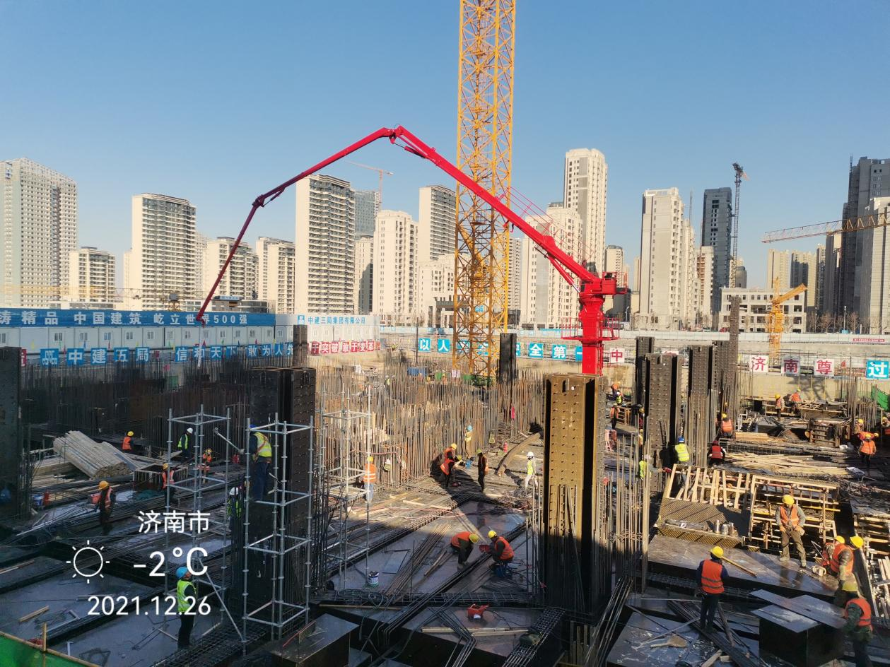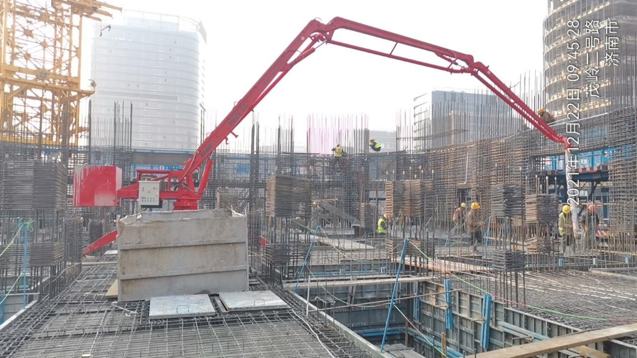 中信泰富·濟(jì)南尊超高層項目位于濟(jì)南CBD核心區(qū),新濼大街以北,茂嶺三號路以西,綢帶公園以東,占地面積2.13萬平方米,總建筑面積28.23萬平方米。項目共建設(shè)2棟商務(wù)樓及大型商業(yè)裙房,其中T1塔樓地上64層,總高度326米;T2塔樓地上23層,總高度123米。項目建成后,將成為濟(jì)南又一座突破300米的超高層建筑。該項目使用的布料機(jī)為凱博科技生產(chǎn)的HGY32樓板爬升式布料機(jī)。