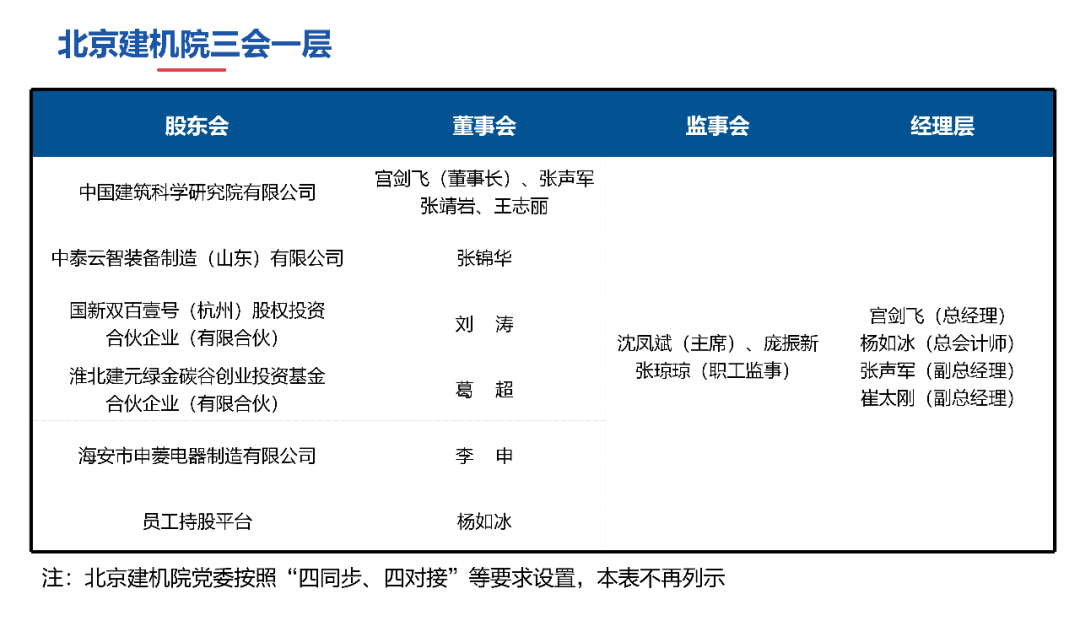 ? ? ? 混改后,北京建機(jī)院由國有全資企業(yè)變更為國有控股混合所有制企業(yè)。其中,中國建研院持股56%,外部投資方合計持股34%,員工持股平臺持股10%。北京建機(jī)院的注冊資本由19,000萬元增加至33,928.5712萬元。